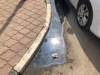 Канализация по улице уже не течет, никаких видимых порывов в этом районе нет. Тем не менее, в ливневке стоит темная жидкость, которая очень сильно воняет и никуда не сходит.
