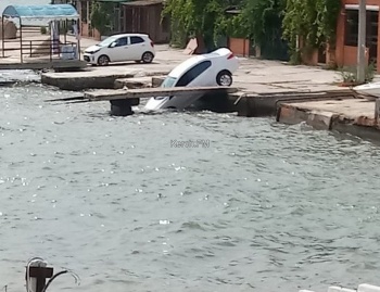 В Керчи 19 августа легковой автомобиль «Пежо» начал скатываться под воду в районе гаражного кооператива на «Змеинке». Видео в Керчь.ФМ прислали постоянные читатели.