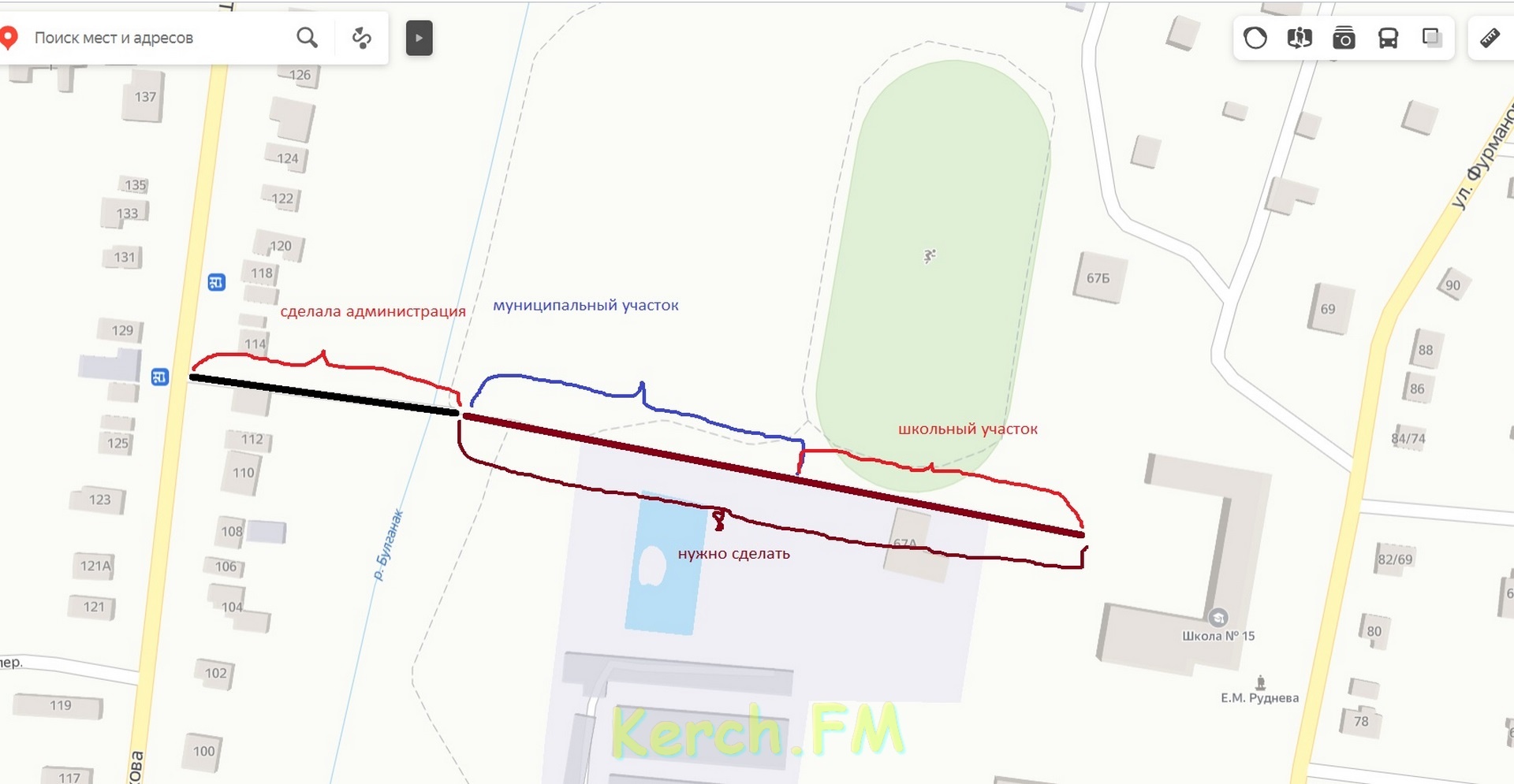 Там с дорожкой и школой вопрос одним мостиком не решится. Бывшая станция юных натуралистов предыдущим «хозяином» земли керченской была любезно поделена на делянки и «раздадена». Участок и строение одной из таких делянок выходят как раз на территорию школы, так как другого выхода у них нет. Это как сосед по дому к себе в спальню через вашу кухню ходил. Если сейчас заикнутся в 15 школе об антитерроре, как это делают по всему городу, то тогда жильцы здания 2008 года постройки окажутся за колючей проволокой. И, кстати да, они также пользуются этой дорожкой к школе.