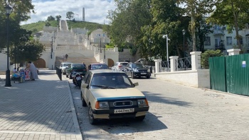 Журналист Керчь.ФМ прошелся к лестнице: и правда, баки без площадки, на новой плитке уже имеются несколько пятен машинного масла. А в сквере и вовсе развернулась стихийная торговля сувенирами. Но это не все: для туристов организовали платные поездки на гору Митридат. Кто не хочет по солнцу подниматься наверх, могут проехать на машине, заплатив водителю.