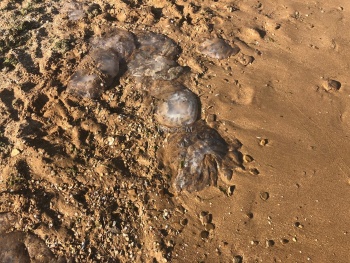Керчане в последний день лета отправились на горпляж, но покупаться сильно не удалось: берег усеян медузами. Медузы целые и их остатки лежат не только в песке, но и в мутном море, - передает Керчь.ФМ.