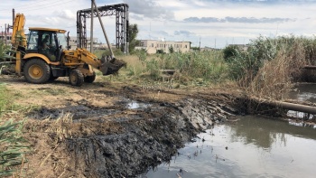 Так, уже несколько дней здесь работает спецтехника, которая расчищает реки. Камыши и ил убирают с помощью большого ковша. Стоит отметить, что при ведении строительных работ по строительству транспортной развязки Буденного-ШГС при разборке путепровода русло реки закидали строительным мусором. Также и по этой причине жители Солдатской слободки не могли ни заехать к себе домой, ни выехать.