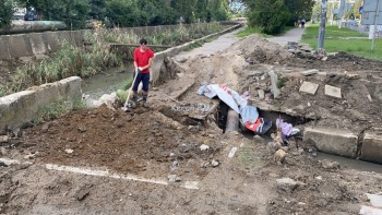 В Керчи 3 сентября на Вокзальном шоссе приступили к расширению ливневки. Её во время последнего потопа в городе разрушили, чтобы вода быстрее уходила в речку Мелек-Чесме. Сегодня же, рабочие расширяют ее на два метра, чтобы при сильных осадках вода быстрее уходила.