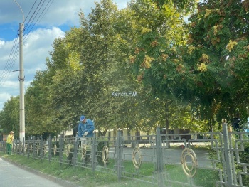 В Керчи 6 сентября на улице Свердлова проходит уборка. Коммунальщики подметают пешеходные дорожки и косят траву вдоль обочин, - передает  Керчь.ФМ.