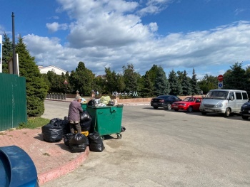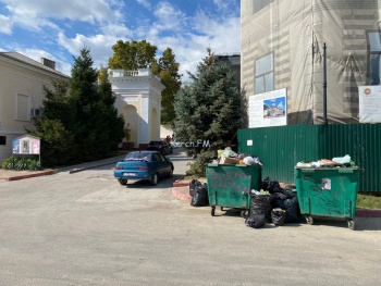 В Керчи на улице Театральной, около подножья Митридатской лестницы, туристов встречает свалка мусора. Возле контейнерных баков - горы мусора. Стоит отметить, что контейнерной площадки там нет.