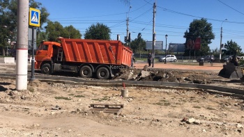 По словам очевидцев, техника была задействована в реконструкции. «КАМАЗ» ушёл в землю не сразу, а при его загрузке.