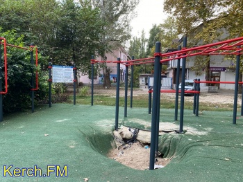 На спортивной площадке, которая находится во дворе между домами Пошивальникова, 50, и Горького, 28, обрушилось напольное покрытие. Помимо этого, часть спортивного обуродования изрисована, а табличку с правилами использования спортивного оборудования, видимо, исписал "сапожник". И судя по состоянию тренажеров, здесь часто воруют блины, — передает Керчь.ФМ.