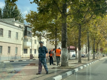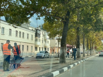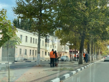 В Керчи 14 сентября на улице Пирогова осуждённые под охраной убирали пешеходную дорожку. Они собирали собирали листву. Все рабочие были в жилетах, - передает Керчь.ФМ