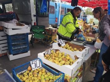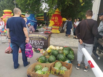 С раннего утра площадь перед Дворцом пионеров заняла сельскохозяйственная ярмарка. Чтобы заготовить припасы по приемлемым ценам керчане приезжали на машинах и брали продукты мешками. По 20 рублей были лук, морковь и свекла, картофель по 30, арбузы по 5. Те, которые порасторопнее и приехали пораньше, остались довольны, - передает Керчь.ФМ.
