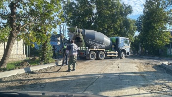 В Керчи 2 октября на улице Островского продолжаются дорожные работы. Несмотря на выходной день рабочие бетонируют основание новых бордюров. Их начали устанавливать на улице 24 сентября, - передает Керчь.ФМ.