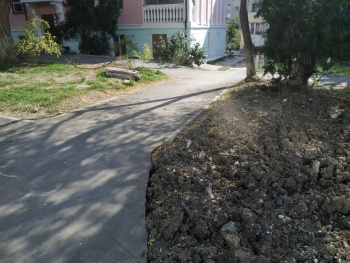 В Керчи на ул. Ульяновых, 1, частично повреждена новая пешеходная дорожка, на которой совсем недавно уложили асфальт, - передает Керчь.ФМ.