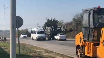 На выезде из Керчи легковушка «догнала» военный грузовик