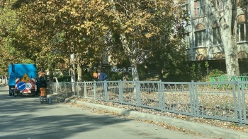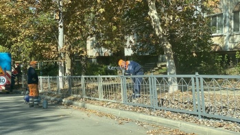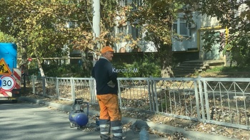 В Керчи на Генерала Петрова красят ограждения у дороги