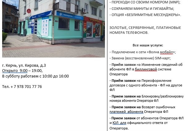 Подайте заявление в нашем салоне «Волна мобайл» в г. Керчи на ул. Кирова, 3.
