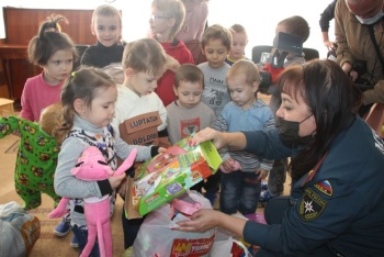 В благотворительной акции приняли участие сотрудники МЧС, собрав вещи и игрушки. Предприниматели привезли маленьким керчанам продукты: картофель, морковь, капусту, арбузы, яблоки, груши, виноград, цитрусовые и гранаты.
