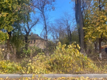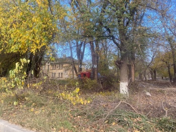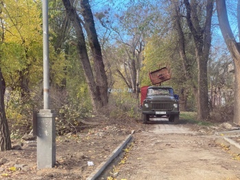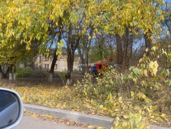 В Керчи на Войкова пилили сухие ветки деревьев