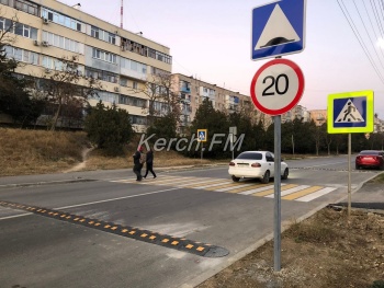 Они установлены с двух сторон пешеходного перехода у остановки в районе «Семи ветров». Также здесь появились и новые дорожные знаки, которые ограничивают скорость до 20 км/ч.