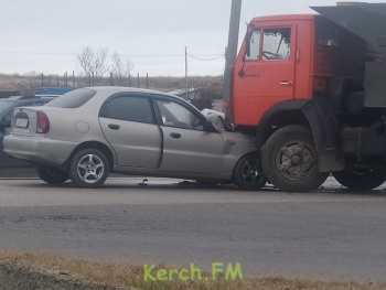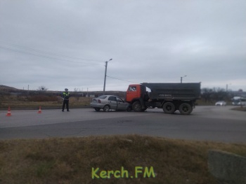 На перекрестке Индустриальное шоссе - Куль-Обинское шоссе около 15 часов произошло ДТП. Самосвал, выезжая на главную дорогу допустил наезд на автомобиль Daewoo, - передает Керчь.ФМ.