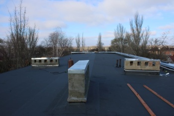 В ходе ремонтных работ компания "СтройМонтажСервис" практически полностью выполнила устройство мягкой кровли над спортивным залом площадью 600 кв. м. На завершающем этапе находится и монтаж кровли из металлочерепицы над зданием начальной школы площадью 800 кв. м, после чего строители приступят к ремонту кровли над зданием общей школы площадью 1000 кв. м.