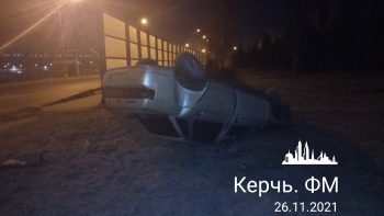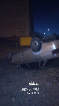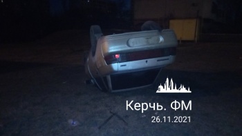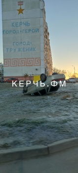В Керчи в ДТП на Верхнем Солнечном перевернулась машина