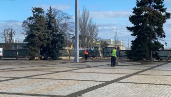 В Керчи 2 декабря по площади Ленина грузовые машины развели грязь. Они возят строительные материалы для реконструкции сквера. На 10:30 часов вышли два рабочих и сметали грязь, вот только по этой территории ходят люди, которые разносят ее дальше, - передает Керчь.ФМ.