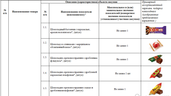 Состав одного новогоднего подарка (состав подарочного набора конфет) будет таким: