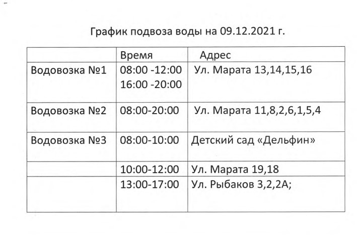 Керченский водоканал сообщает, что с 08:00 до 20:00 час. 09.12.2021 г. в связи с работами на водоводе Д-110 мм по ул. Марата будет отсутствовать водоснабжение в районе «Марат», - передает Керчь.ФМ.