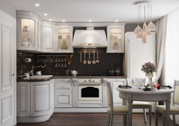 - 26% скидка на фасады классических кухонных гарнитуров «Мишель» (массив дуба) и «Николь» (массив березы).