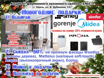 В Керчи по адресу ул. Володи Дубинина, 15 открыт фирменный салон ведущего российского производителя кухонных гарнитуров фабрики «ENLI».
