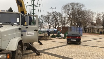 В Керчи 8 декабря на площади Ленина продолжают собирать главную новогоднюю елку. Как передает Керчь.ФМ, рабочие приступили к закреплению веток на каркас.
