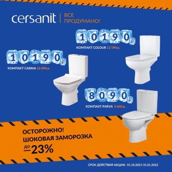 Шоковая заморозка цен от CERSANIT! До 31.01.2022 действует специальная цена на 3 компакта от проверенного временем производителя сантехники.