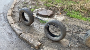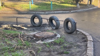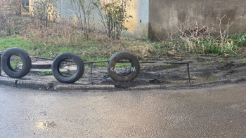 В Керчи на улице Юных Ленинцев управляющая компания установила необычный забор. Он состоит из нескольких труб и трех покрышек. Об этом редакции Керчь.ФМ сообщили жители района.