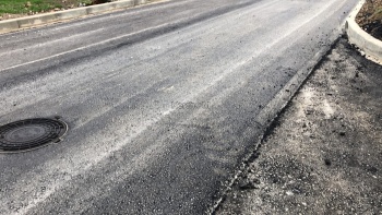Отметим, к ремонту дороги здесь приступили еще в августе. Потом работы затихли и начались в октябре. Укладывать асфальт начали в ноябре. Примерно в это же время здесь делали пешеходные дорожки вдоль домов, но посреди них оказались электроопоры. Потом дорожки было решено переделать.