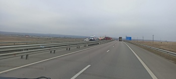 Фура врезалась в отбойник и вылетела с дороги. На месте работают правоохранители, движение в сторону Керчи затруднено.