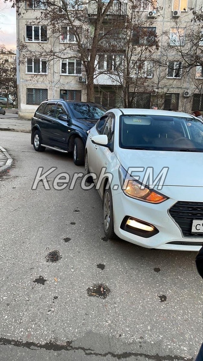 По информации очевидцев, белый «Хендай » сдавал назад и врезался в кроссовер. На место вызывали ГИБДД.