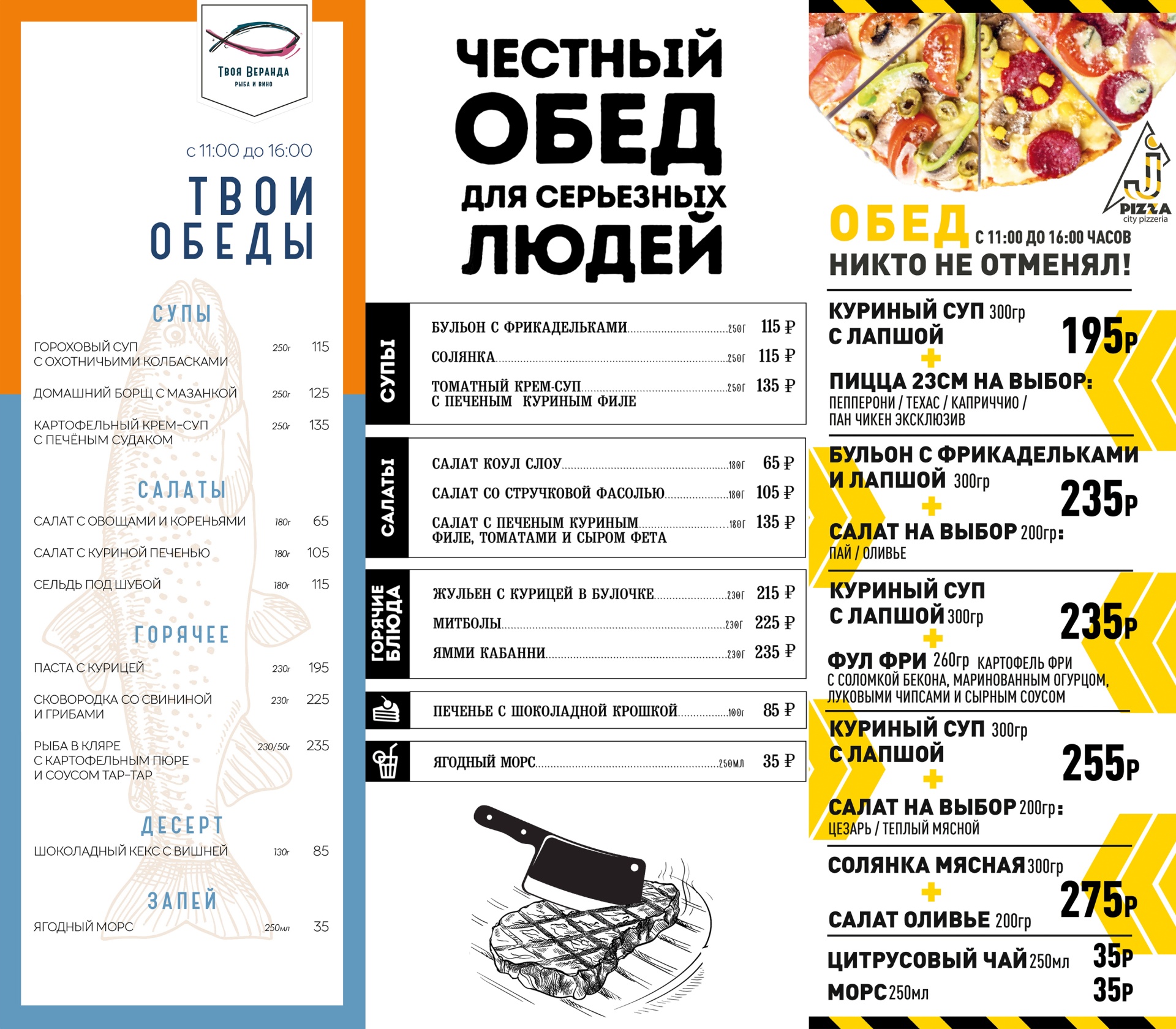 Готовим вкусные обеды по честным ценам всю неделю с понедельника по пятницу с 11:00 до 16:00, залетайте ;)