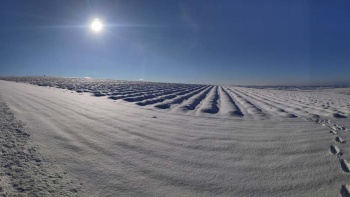 Лавандовые поля в Крыму накрыло одеялом из снега