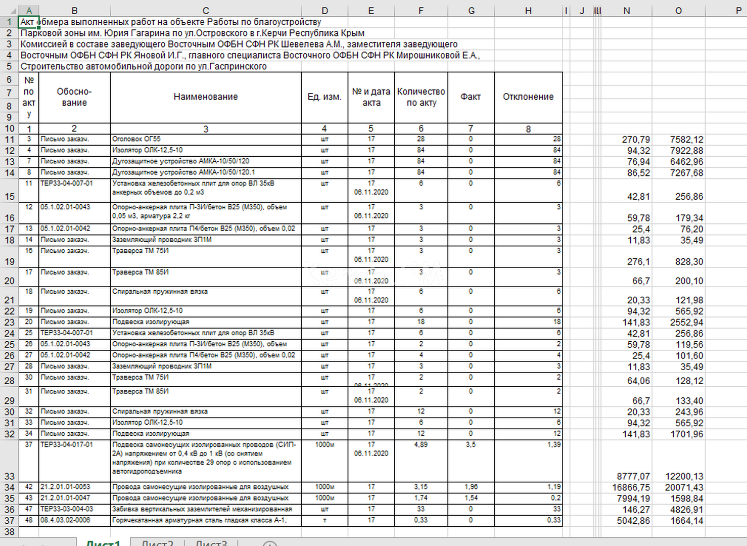 Возможно, это укладывали изолятор, или оголовок, или опорно-анкерную плиту, или заземляющий проводник, которые не уложили, но за которые заплатили. Акт обмера выполненных работ есть в распоряжении редакции. Финнадзор в акте обмеров электрической части нашел невыполненных, но оплаченных материалов на 77 701, 09 руб.