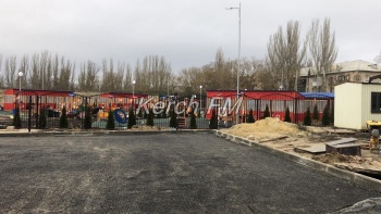 Возвращаемся к садику. Есть еще место, со стороны улицы Клинковского, где нет секций нового ограждения. Возможно, их не поставили сюда, поскольку не завершили укладку асфальта на территории.