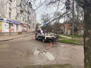 В Керчи на улице Курсантов заменили несколько плафонов уличного освещения. Перед работами сотрудники Горсвета установили предупреждающие дорожные знаки, - передает  Керчь.ФМ.