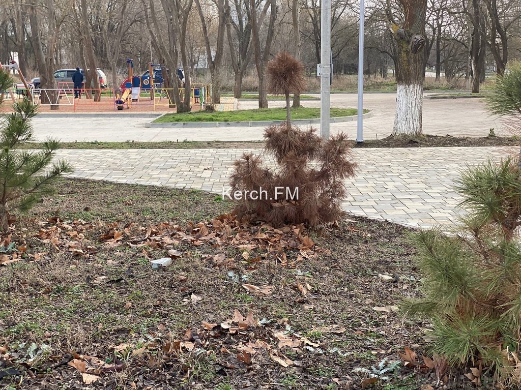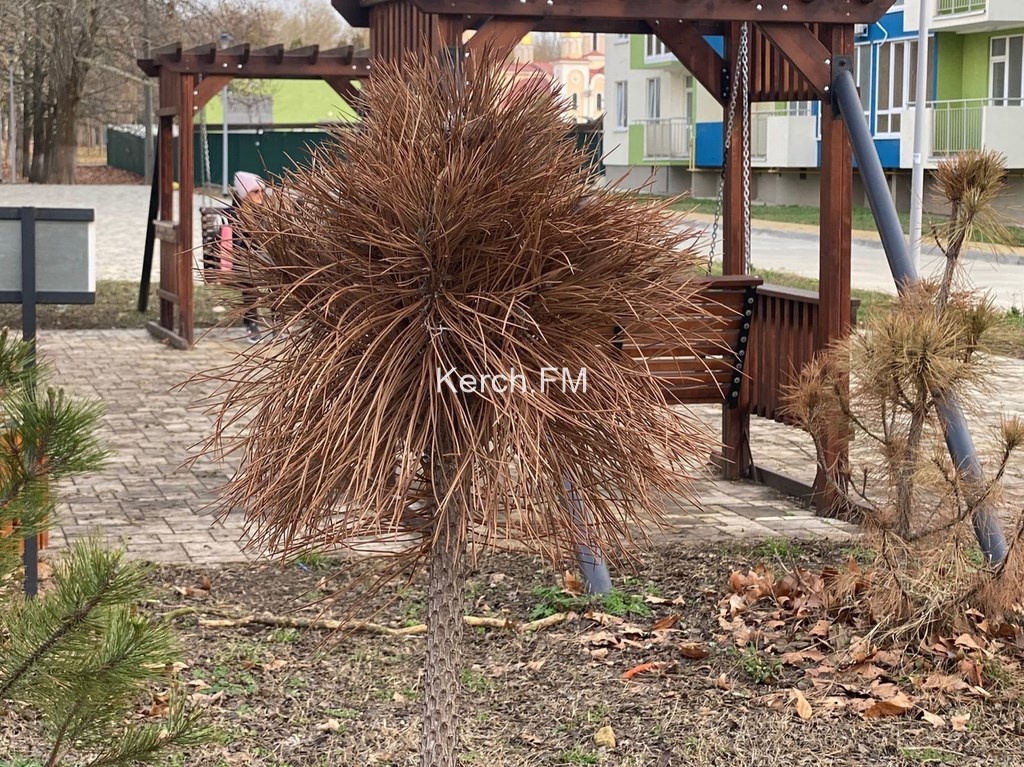 В Керчи на территории Дворца Пионеров засыхают сосны. Одно хвойное дерево засохло уже полностью, другие частично. Керчане не понимают, почему за недавно высаженными деревьями никто не ухаживает. Напомним, в Комсомольском парке засыхают десятки туй, а администрация продолжает высаживать новые, - передает Керчь.ФМ.