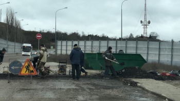 Отметим, в прошлый раз здесь ремонтировали дорогу еще в июле, но ремонтировать ее вышли не подрядчики, а «Керчьгортранс» - чьи автобусы и следуют тут ежедневно по маршруту.