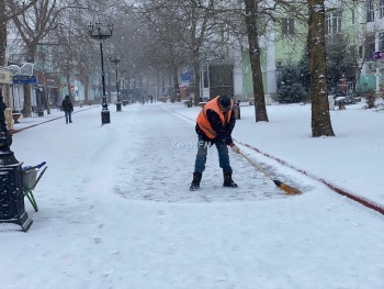 В Керчи с ночи 18 января начал идти снег. С самого утра центральные дороги обработали песком, - передает Керчь.ФМ.