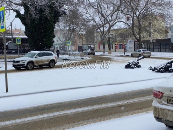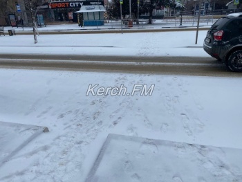 В Керчи, как и прогнозировали, 23 января дорога вновь покрылись снегом. По скользким улицам, которые с утра никто не посыпал и не чистил, люди пытались пройти и не получить травмы.