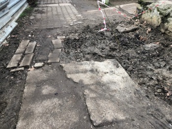 В редакцию Керчь.ФМ снова обратились постоянные читатели с жалобой на постоянную грязь на тротуаре вдоль дороги по Орджоникидзе. Так, из-за порывов, разрытого асфальта и просто куч грязи, некоторые участки пройти невозможно.