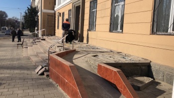 Рядом на оборудованном пандусе уложена совершенно иная плитка. Люди надеются, то после ремонта, ступени в суд не будут выглядеть также и напоминать ремонт в ванной в квартире.