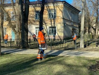 В Керчи 15 февраля на улице Казакова сотрудники УЖКХ приводили в порядок газоны. Как Керчь.ФМ рассказал постоянный читатель, убирать листву и ветки рабочие начали с самого утра.