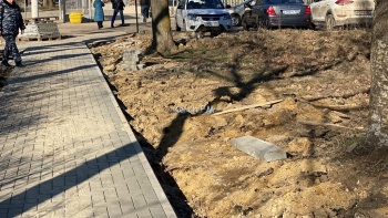 Часть бордюров и новой плитки еще не увезли.