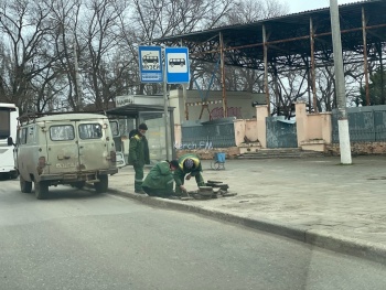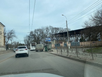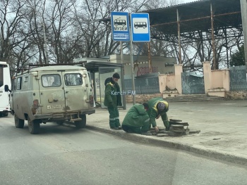 В Керчи 17 февраля на улице Свердлова, на остановке «Музей» рабочие перекладывали плитку. Работы проводили около дорожного знака, - передает Керчь.ФМ.