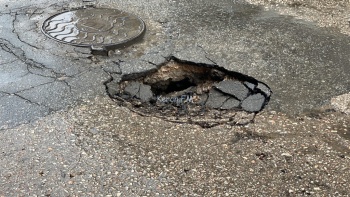 На Театральной провалился участок дороги